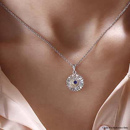 September Birthflower Aster with Massola Sapphire Pendant in Two Tone Sterling Silver