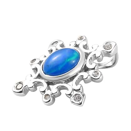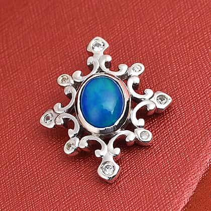 Miami Blue Welo Opal and Natural Cambodian Zircon Pendant in Platinum Overlay Sterling Silver 1.25 Ct.