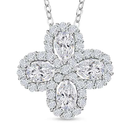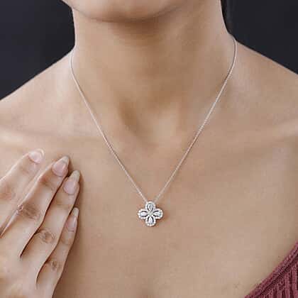 Moissanite Clover Pendant with Chain (Size-20) in Platinum Overlay Sterling Silver 1.43 Ct.