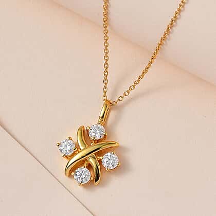 Moissanite Pendant with Chain (Size 20) in 18K Yellow Gold Vermeil Plated Sterling Silver
