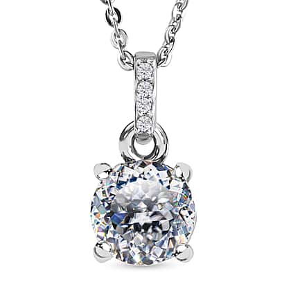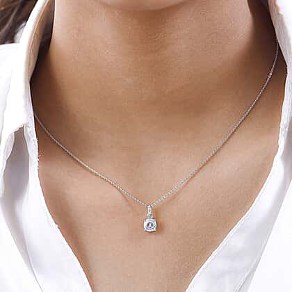Moissanite Pendant with Chain (Size 20) in Platinum Overlay Sterling Silver 1.020 Ct