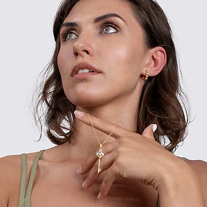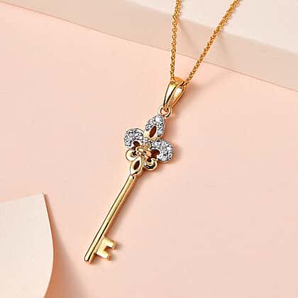 Moissanite Pendant with Chain in Vermeil YG Sterling Silver Wt. 6.87 grams, 0.120 Ct
