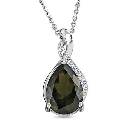 Moldavite and Natural Zircon Pendant with Chain (Size 20) in Platinum Overlay Sterling Silver 2.46 Ct.