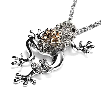 Multi Austrian Crystal Frog Pendant with Chain (Size 29 with 3 inch Extender) in Silver Tone