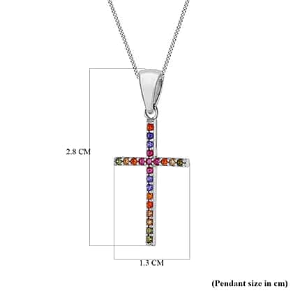 Sterling Silver Cross Pendant in Multi Colour Cubic Zirconia