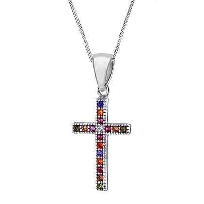 Silver Cross Pendant in Multi Colour Cubic Zirconia