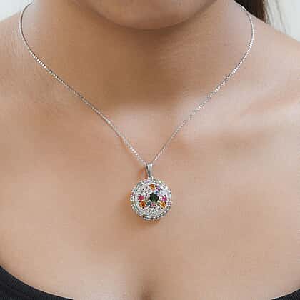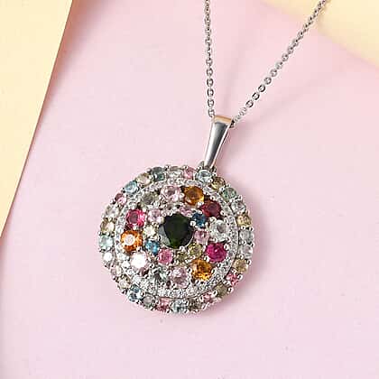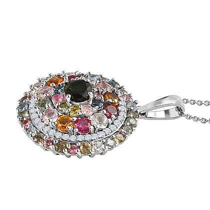 Multi-Tourmaline and Natural Zircon Cluster Pendant with Chain (Size 20) in Platinum Overlay Sterling Silver 4.20 Ct, Silver Wt. 6.41 Gms
