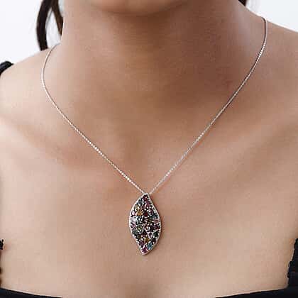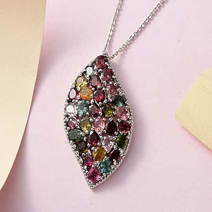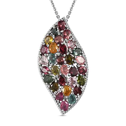 Multi-Tourmaline Cluster Pendant with Chain (Size 20) in Platinum Overlay Sterling Silver 4.34 Ct, Silver Wt 5.83 GM