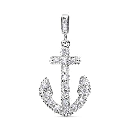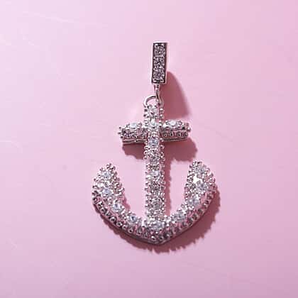 NY Closeout - Cubic Zirconia Anchor Pendant in Sterling Silver