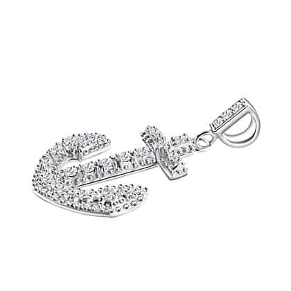 Simulated Diamond Anchor Pendant in Sterling Silver