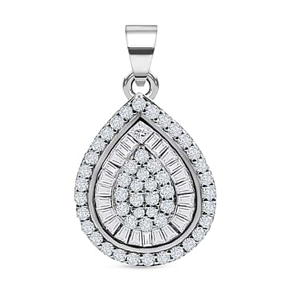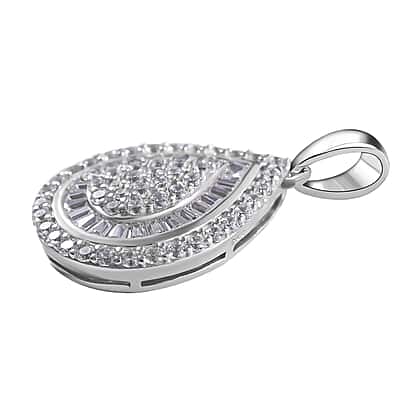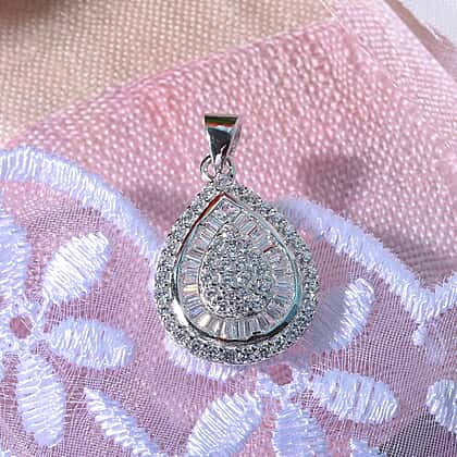 NY Closeout - Zirconia Cluster Drop Pendant in Rhodium Overlay Sterling Silver