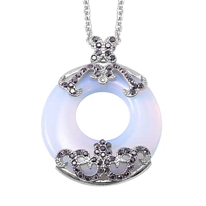 60.85 Ct. Opalite Round Pendant in Silver Tone