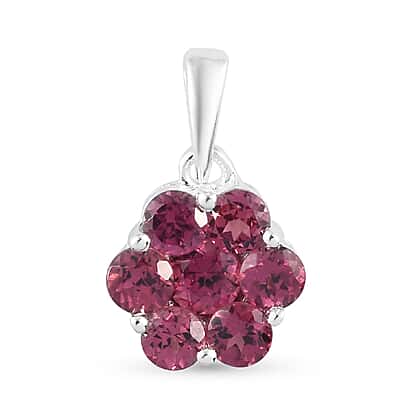 Orissa Rose Garnet Floral Pendant in Sterling Silver 1.85 Ct.