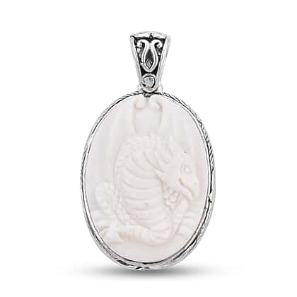 OX Bone Dragon Carved Reversible Pendant in Sterling Silver, Silver wt 6.00 Gms
