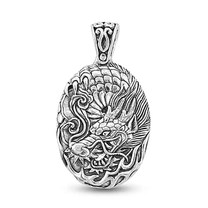 Royal Bali Collection- OX Bone Dragon Carved Reversible Pendant in Sterling Silver