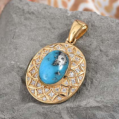 Persian Turquoise (Ovl 14x10 mm), Natural Cambodian Zircon Pendant in 14K Gold Overlay Sterling Silver 6.500 Ct, Silver wt 6.40 Gms