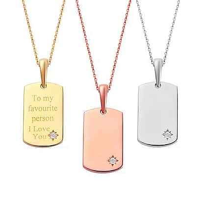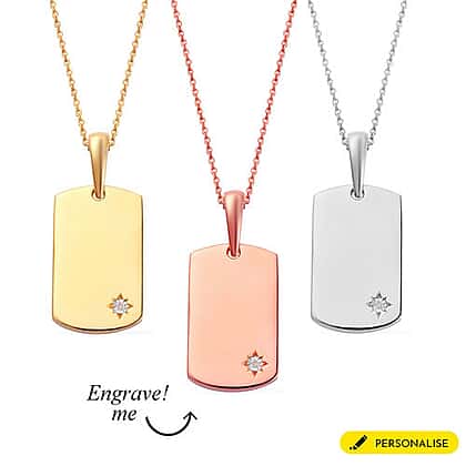 Personalised Engravable Diamond Dog Tag Pendant with Chain
