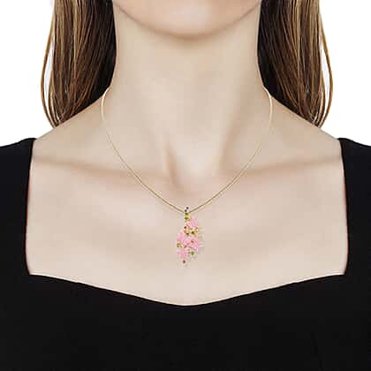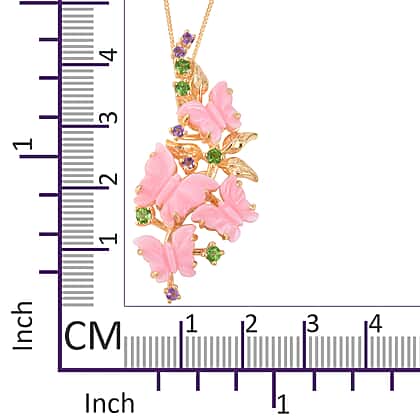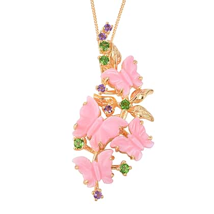 Jardin Collection Pink Mother of Pearl and Multi Gemstone Butterfly Pendant with Chain in Gold Plated Silver