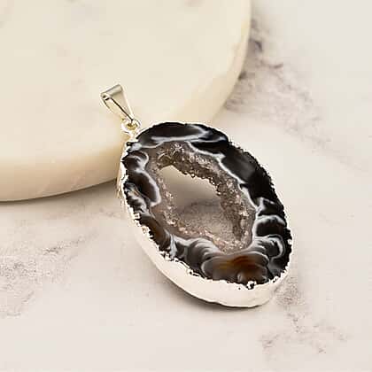 Plain Geode Sire Pendant in Silver Tone 10.00 Ct