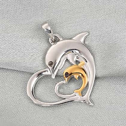 Platinum and Yellow Gold Overlay Sterling Silver Dolphins in Heart Pendant