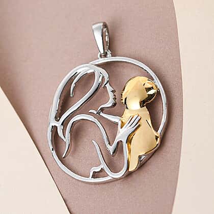 Platinum and Yellow Gold Overlay Sterling Silver Mother Child Love Pendant