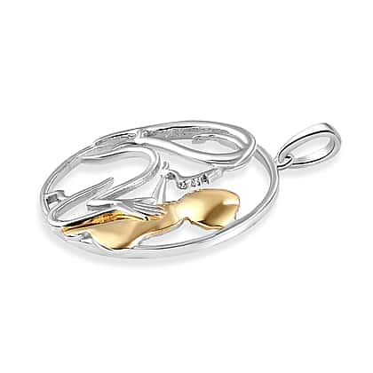 Mother Child Love Pendant in Platinum and Yellow Gold Plated Sterling Silver