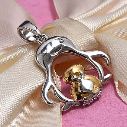 Penguin Mother Child Pendant in Platinum and Gold Plated Silver