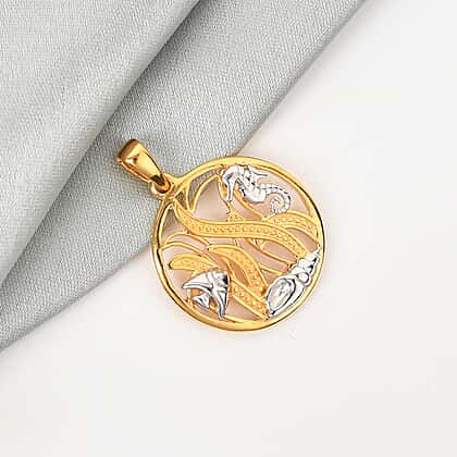 Platinum and Yellow Gold Overlay Sterling Silver Sea World Pendant
