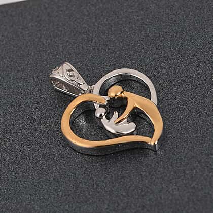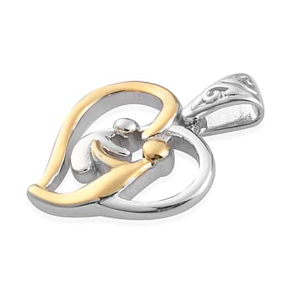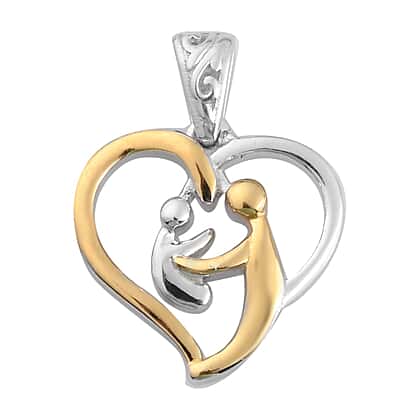 Platinum and Yellow Gold Sterling Silver Mother Child Heart Pendant