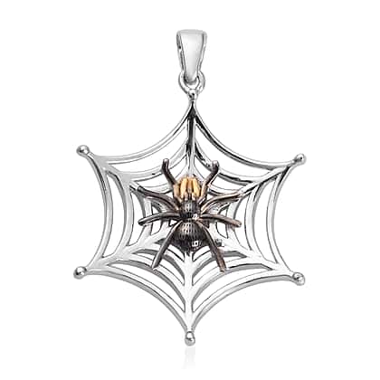 Platinum, Yellow Gold and Black Overlay Sterling Silver Spider Web Pendant