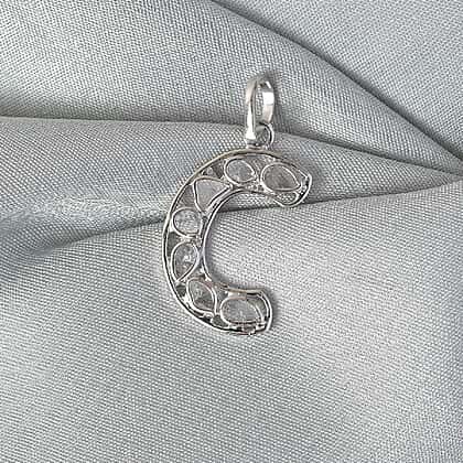 Polki Diamond Initial C Pendant in Platinum Overlay Sterling Silver 0.50 Ct.