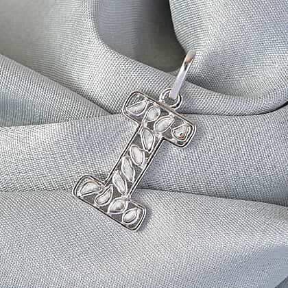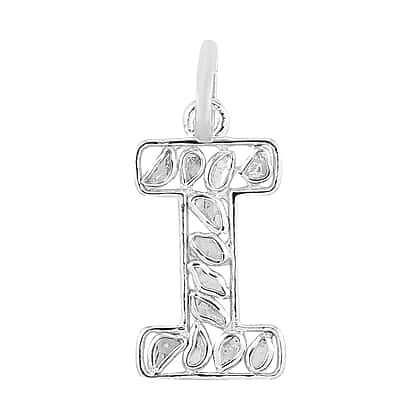 Polki Diamond Initial I Pendant in Platinum Overlay Sterling Silver 0.50 Ct.