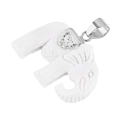 Princess Bali Collection - OX Bone Carved Face Elephant Pendant in Sterling Silver 25.00 Ct.