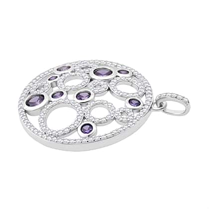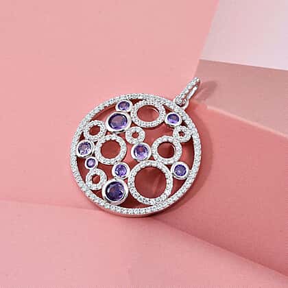 Purple Cubic Zirconia, White Cubic Zirconia Bubble Pendant in Rhodium Overlay Sterling Silver 3.69 Ct.
