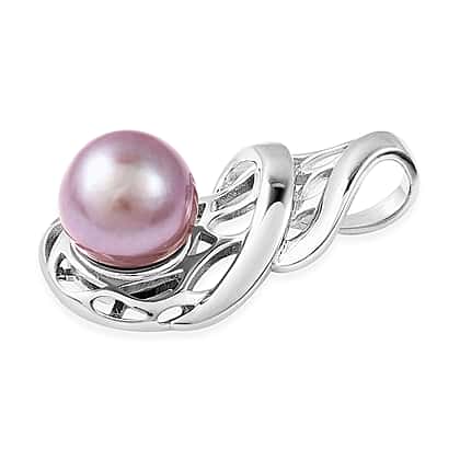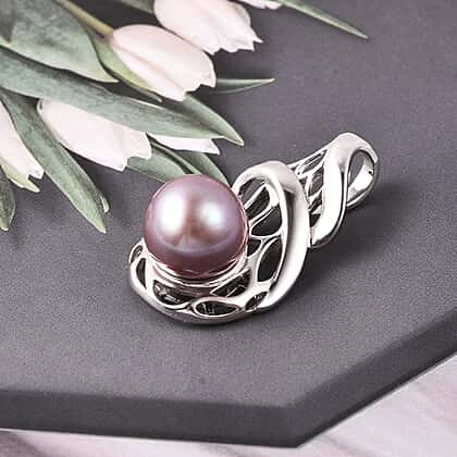 Purple Edison Pearl Pendant in Rhodium Overlay Sterling Silver