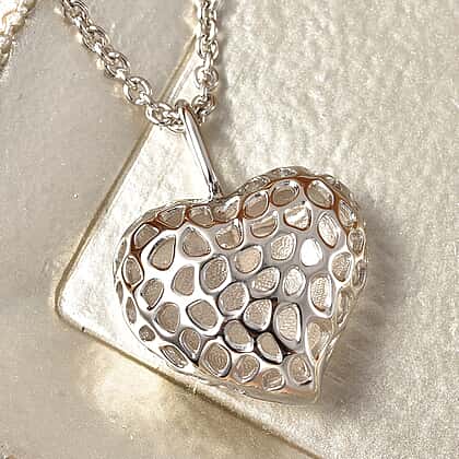 Rachel Galley Amore Collection Heart Pendant with Chain in Rhodium Plated Sterling Silver