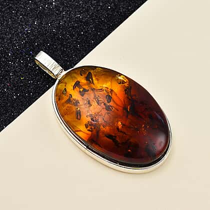 Rare Bi Colour Amber Pendant in Sterling Silver 60.00 Ct, Silver Wt 8.50 Gms