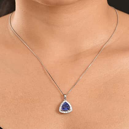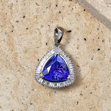 Rhapsody - 950 Platinum AAAA Tanzanite & White Diamond (VS-E-F) Trillion Cut Halo Pendant 4.04 Ct, Platinum Wt. 4.05 Gms
