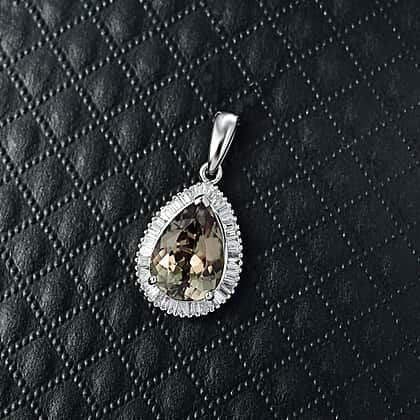 Rhapsody 4.5 Ct. AAAA Natural Turkizite, Natural White Diamond Halo Pendant in 950 Platinum (VS-EF)