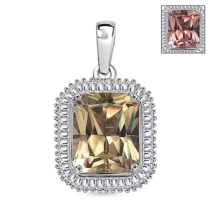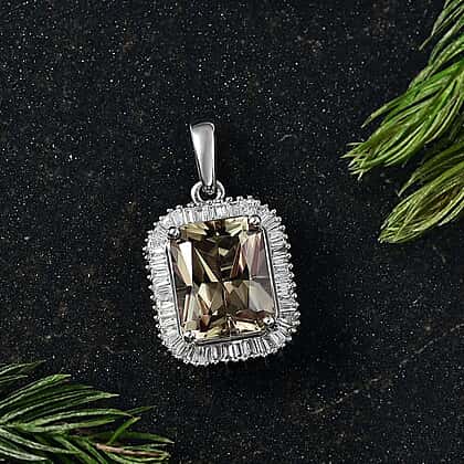 Rhapsody 5 Ct. AAAA Radiant Cut Natural Turkizite, Natural Diamond Halo Pendant in 950 Platinum (VS/EF)