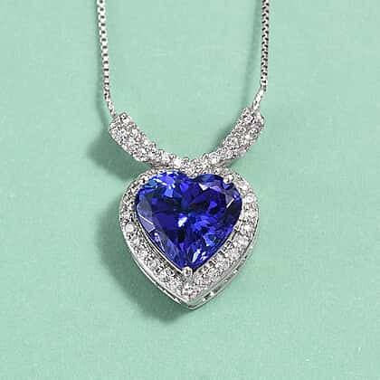Collector Edition 2 Ct AAAA Tanzanite and Diamond VS EF Heart Pendant with 18 Inch Chain in 950 Platinum