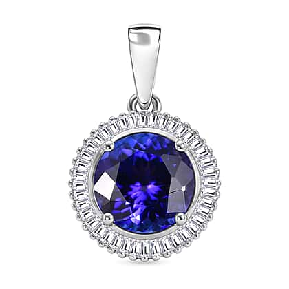 RHAPSODY 950 Platinum AAAA Tanzanite and Natural Diamond (VS-EF) Round Cut Halo Pendant 3.504 Ct. Platinum Wt. 2.84 Gms