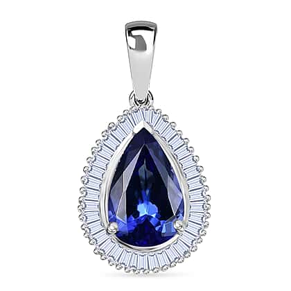 Rhapsody 950 Platinum AAAA Tanzanite White Diamond VS2 Main Stone With Side Stone Pendant, Platinum Wt.3.08 Gms 2.949 Ct.
