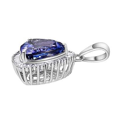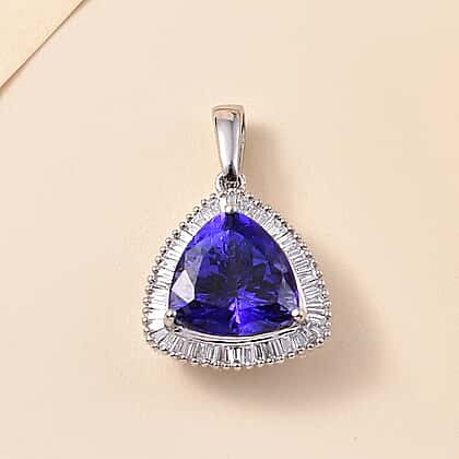 RHAPSODY 950 Platinum AAAA Trillion (4.00 Cts) Tanzanite & Natural Diamond (VS-E-F) Halo Pendant 4.47 Ct.