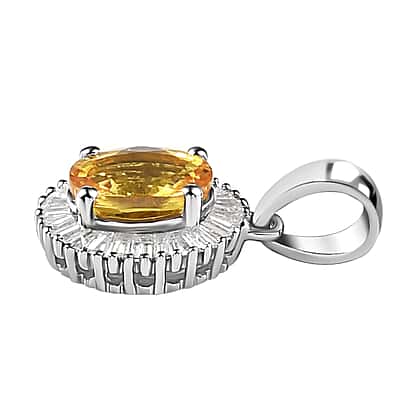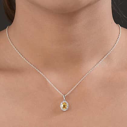 RHAPSODY 1.23 Ct AAAA Yellow Sapphire and VS EF Diamond Halo Pendant in 950 Platinum