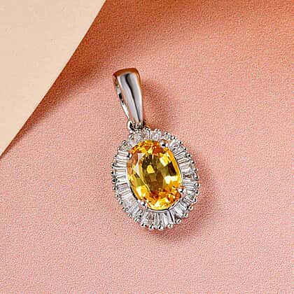 RHAPSODY 950 Platinum AAAA Yellow Sapphire and (VS-E-F) Diamond Pendant 1.35 Ct.