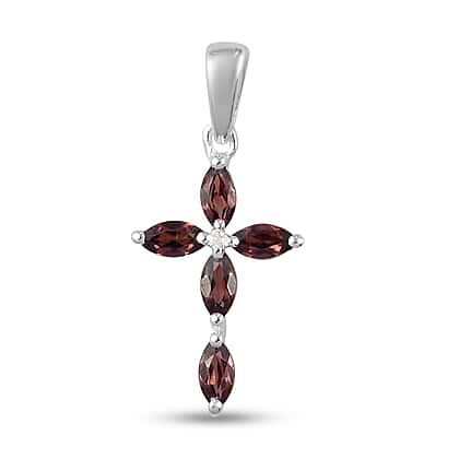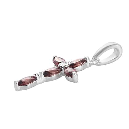 Rose Garnet Cross Pendant in Sterling Silver 1.05 Ct.