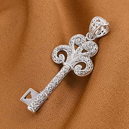 Unlock your style statement for each gathering by adorning this sterling silver key pendant. This solid charm pendant will give you spiritual significance. Crafted using 925 sterling silver, this key pendant is created by talented silversmiths and makes a subtle addition to your daily wear jewellery. The beautiful metal scrollwork adorns this pendant. This pendant is from the royal Bali collection and has a puffed surface. You can wear this pendant with a silver chain from TJC and complete the look.