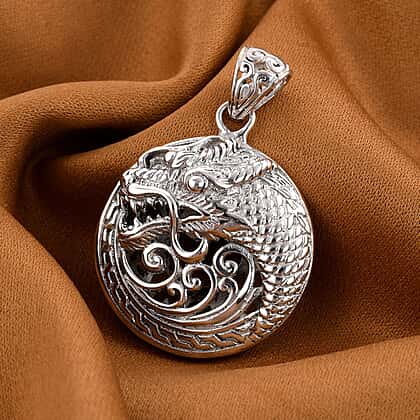 This Chinese dragon medallion pendant's historically rich design and fine artwork will add to your personality and create a statement look for yourself. The minimalist design is inspired by the traditionally significant medallion pendant and works as a coveting charm on your neck. Crafted using solid sterling silver, this pendant's puffed round shank creates a locket-like representation. The Chinese dragon is made with beautiful metalwork and provides a spiritual significance. You can add this pendant to your daily wear collection or gift it to someone special.