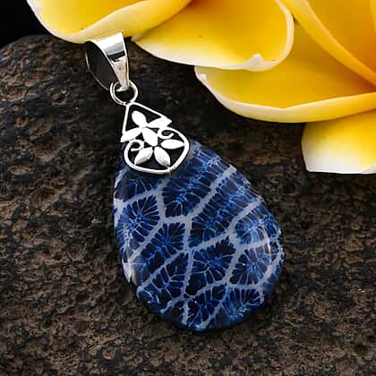 Royal Bali Collection - Blue Coral Pendant in Sterling Silver